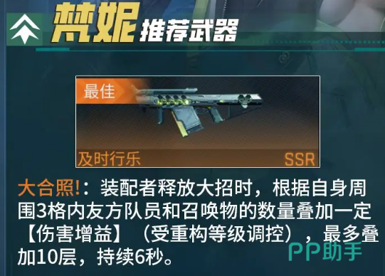 玩这个游戏的小伙伴在抽到镭明闪击梵妮,之后是不是觉得很开心呢?想要把单体的爆发能力拉满,那就需要注重于阵容的搭配,还有武器的搭配。那下面就为玩家来分享一下,看一下到底应该怎么挑选武器,如何搭配阵容,看完之后新手也能够掌握。