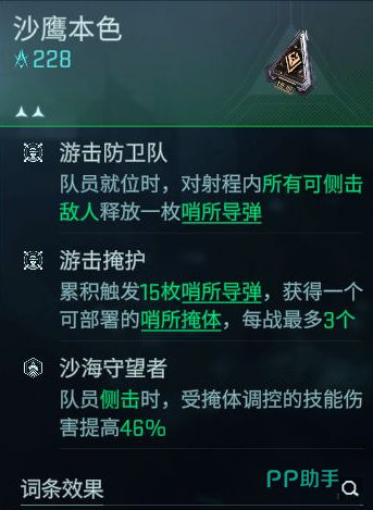 队员在就位时就会针对射程内所有的敌人去放哨所炮弹,另外一旦累积15枚就可以拿到一个可以部署的哨所掩体。此外队员在撤击时受到掩体影响的技能伤害,就可以直接提升46%。与此同时还可以获得四象掩体,不管是躲避技能还是找输出位置都会比较实用。那接着就是判断狙击流派的模组有没有生效,可以看一下敌人的身上有没有标记,只要有标记那三个被动技能全部激活就可以拥有更高的伤害性。