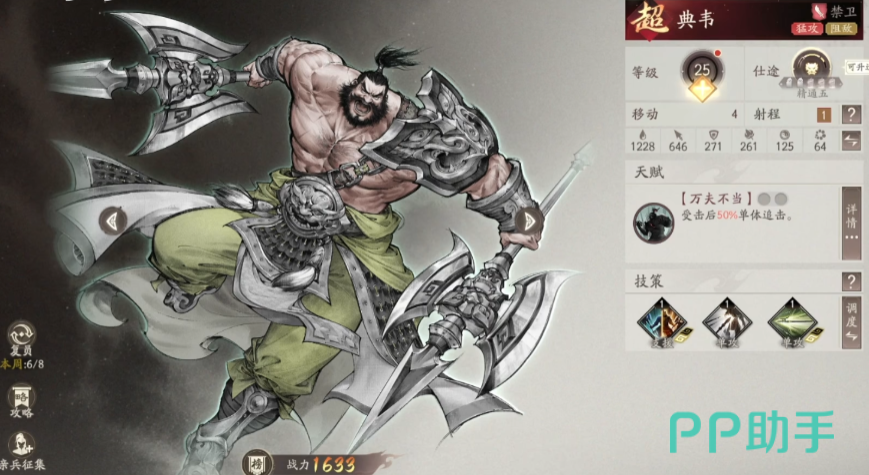 如果大家在三国望神州这款游戏里面比较喜欢玩的是前排武将,这里就给大家介绍一个超品的步兵武将,他就是典韦,典韦在游戏当中还兼具了一定的输出角色能力,三国望神州典韦技能有哪些还可以其他的附加能力,他主要还是放在辅助坦克的能力上面使用,所以本身其实定位不算很固定。
