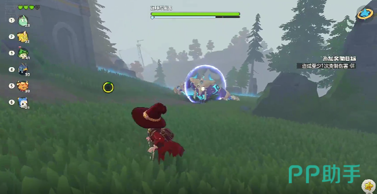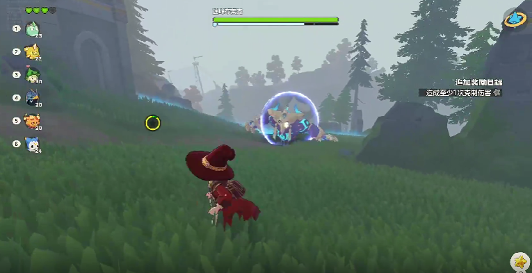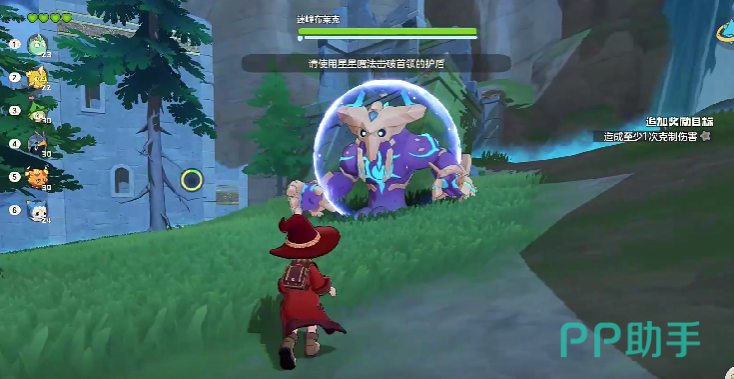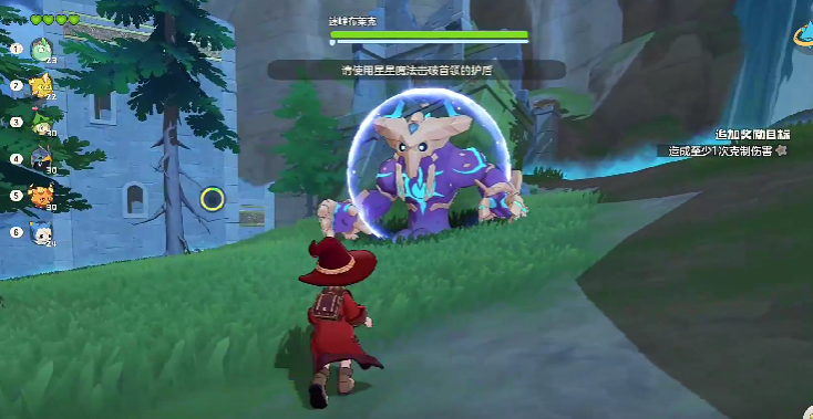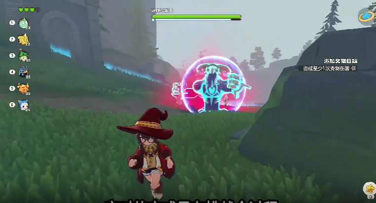 还有一个技能是原地拍地,同样还是需要保持安全距离,也不会受到任何的伤害,玩家们可以利用星星魔法来破除他的护盾,最后一个技能是可以在地面上生突刺,这个技能是会有明显的前摇效果,会出现粉红色的特效,大家可以来生出三个突刺的内容范围,距离有一个小型的黄色圆圈,大家可以控制角色向右边进行冲刺来规避伤害,在破除他的护盾之后,可以利用精灵来直接攻击boss本体,接着在进入到第二个阶段之后就是地系,可以来释放草系以及五武系的精灵,他们出战也可以很好的行操作,只有等boss血量降低到50%时。