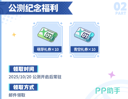 首先就是在公测开启之后,玩家们直接通过体验游戏就可以获得40张萌芽礼券,30张青空礼券,21000张亮银闪蝶,以及两个虹彩秘纹自选包和一个闪耀简历自选包,这些都只是体验游戏之后就可以获得的福利内容,而在游戏中,玩家们在使用闪耀简历之后可以从赤霞、花原,苍兰等中任选一位直接获取,而虹彩秘纹自选包则是从情之花、龙飞凤舞、抓住传说等中等一系列物品中任选一个获取,而亮影闪蝶也拥有着大用处,游戏中还拥有着一个秘纹招募,每一次招募需要300个亮银闪蝶且在这个游戏中,这个秘纹是常驻招募的活动哦。