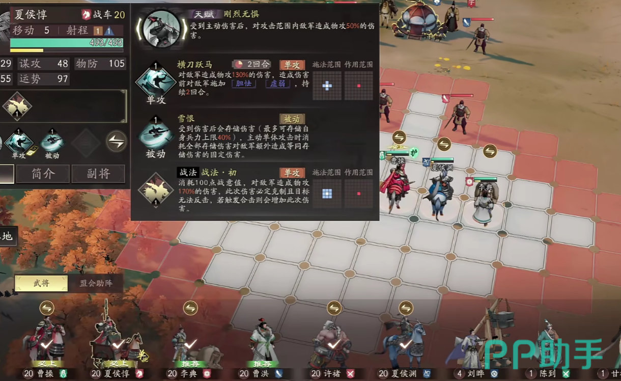 关卡阵容的推荐方面,建议使用夏侯渊、夏侯惇、曹操、 典韦、张辽,如若玩家挑战的是吕布,则可以将张辽这一单位,直接更换为关羽。