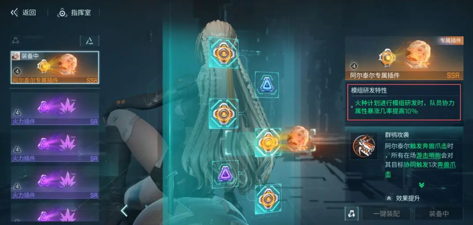 玩家除了要了解槽位机制之外在插件的类型跟效果方面,玩家其实也需要注意的。比如插件的类型,有属性加成的类型,还有战术扩展的类型,最后再加上稀有度的差异。玩家如果在强化插件的时候,对于专属的插件其实要优先强化,这里主要就是指玩家如果绑定了特定的角色,它所拥有的专属插件,就比如大家所熟悉的阿尔泰尔的技能强化插件,它其实是需要优先强化的。