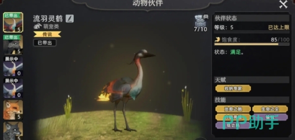 第一个为大家推荐的叫做灵鹤,这个异兽的话,在游戏当中是可以为大家带来一些治疗效果的,它不仅可以为玩家带来持续的生命恢复效果,还可以让大家在冒险的途中达到足够的跑图加速功能,因为它有一个技能叫做滑翔,这类滑翔技能相当于是可以让大家加速自己的走动速度,在一些从高处往低处走的地地形当中,直接飞起来一段距离,但是这里滑翔的能力其实是比较矮的,而且需要消耗的能量也比较多,所以中途也是需要休息才能持续滑翔的,使用的时期一般是在前期大家需要到各处收集资源的时候,这类异兽给大家带来的加成是有用的。