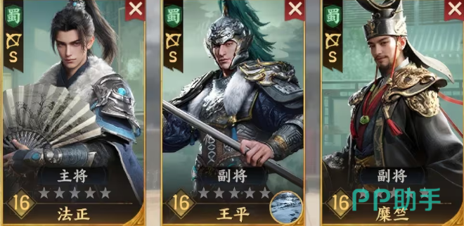 第二个阵容为大家推荐的就是输出弓兵队,也可以当做一个主要攻击的阵容来使用,其中的角色有王平、法正还有糜竺,这三个角色里面有两个也是同样通过主线解锁来获取的,获取难度并不高的就是王平跟糜竺这两个角色,在主线达到一定闯关的情况下系统就会自动赠送,然后法正的话,大家可以通过势起山河这个活动里面来免费获取,而且获取他的时候,他的能力上面就有很多是这个阵容里面用到的核心能力,相对来说获取难度也不高,适合前期需要过渡的时候来使用,而现在参与活动,霸业初兴的时候在第一天其实如果有足够碎片的话,大家也可以去兑换徐庶这个角色,后期的话,可以用徐庶来兑换王平,或者是替换糜竺,这样整体的强度上面也会有足够的提升效果。