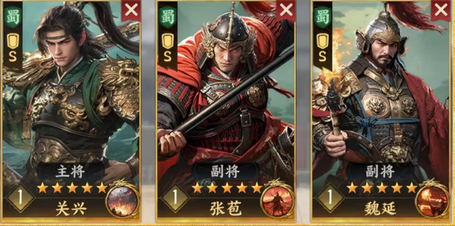 首先为大家推荐一个扛伤盾兵队,这个队伍里面大家可以用张苞,关兴,魏延三个武将来进行搭配,其中的有两个武将都是可以在主线赠送里面得到的,就是张苞跟关兴,而如果魏延大家前期第一天想要得到的话,还是有难度的,所以在签到第二天的时候,系统会赠送一个,这样就算新手开局两天都可以组成这样的一个盾兵队,虽然技能效果上面这3个角色都没有很强的数值可以用到,但是他们放在盾兵效果上面基本都是可以达到S强度的,所以也是一个比较合格的抗伤角色,前期作为主力的话,数值也是足够应对一些前期关卡的,那么大家第一天如果实在没有魏延,又想用这样的盾兵队,也可以先用其他的S级盾兵代替一下,比如说张飞这个盾兵就是不错的。