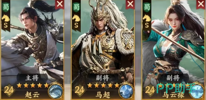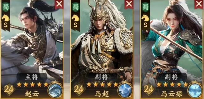 最后为大家推荐一个输出骑兵队,其中的角色基本都是靠骑兵带来加成的节奏,用到的是马超、赵云和马云禄,这3个武将其实基本都是靠单体输出的角色带来足够加成的,而且3个角色都属于蜀国阵营当中的武将,所以后期如果有蜀国阵营加成的话,带来的普攻能力也可以用上多范围的输出效果,这三个角色放在一起的话,有很大的概率可以触发多次追击,所以这里额外普攻一次的话,可以带来的整体伤害量就非常高,但是马云禄需要后期解锁兵书了之后,才可以达到足够的追击次数,而且还可以额外增加普攻,那么赵云他的被动上面如果有骑兵不屈的移速加成的话,带来的5%移速加成还是比较好用的,马超在自身效果上面可以根据他的移速相差数值,来额外提升自身的普攻伤害,而马云禄他被动上面还可以提升自身布局的普攻伤害效果,所以这一个三个将领放在一起的话,其实他们打一些小规模作战或者是去打地的话,能力都不错,还可以带来各种普攻连招的优势。