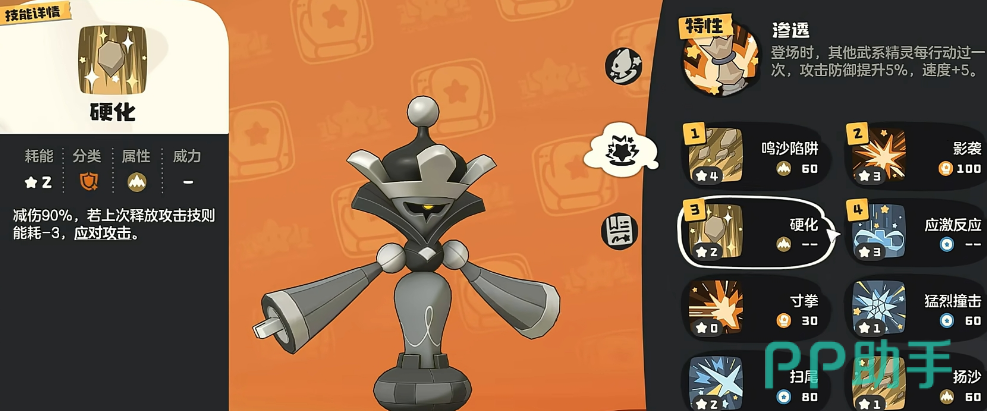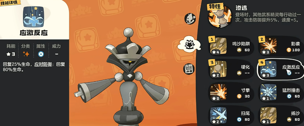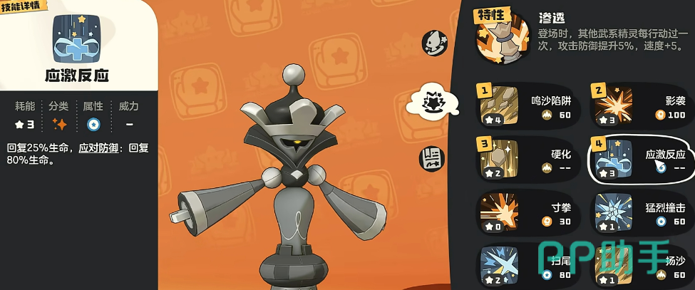 硬化和应激反应是棋绮后技能组的主打,硬化技能提供90%减伤,对于棋绮后来说减伤技能十分必要,尤其是在面对敌人爆发时,能够很大程度上减少敌人所造成伤害,使得棋绮后在面对高输出精灵时不容易被秒杀。应激反应则是与硬化技能相辅相成的另一个防御技能,应激反应也是在棋绮后受到伤害后触发,并且能提供一定的回血,这在棋绮后的续航能力上起到了非常重要的作用。当面对敌人的高爆发伤害时,棋绮后即使被敌人攻击中,但是也能通过应激反应的恢复效果来弥补伤害,并且能保持一段时间的战斗力。棋绮后在短时间内的能承受大量的伤害,并且通过恢复效果来保持住战斗力。