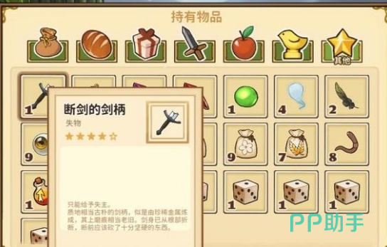 除了以上这些特别普通的物品以外,还有两种特殊的物品,首先就是树皮,这是骑士哈克特不小心丢失的重要物品,而此物品对于这个人物角色来说是非常重要的,也是关键道具,因此要按照具体的方式将其归还给对方,彼此加20点好感度,还可推进支线任务。其次另外一种就是肖像画,想获得这种道具时,就需要展现出自己卓越的绘画技能,其次还有两种分类,那就是前期和后期,只要达到了一定的绘画技能之后,就可轻松获得,还有转赠权。