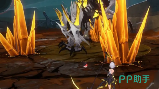 首先,当此boss进入到普通阶段的时候,那么大家率先就要找准目标,可优先攻击对方的四肢,四肢对于此角色来说算得上是最大的弱点,只有将其四肢全部打碎之后,就可以立即进入到处决状态之下。其次,大家也需仔细观察战场的地面环境,如果地面上出现黄色圆圈的时候,那么就需要立即快速逃跑,从而在圈外躲避。因为对方会立即开启砸地攻击,对自身的伤害值比较大。其次,当地面上出现小型红色状态的时候,也需左右躲闪或者是跳跃的方式及时躲避,因为地面上会突然间凸起晶体尖刺。