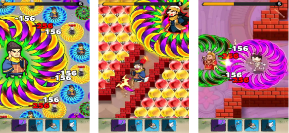 鸠摩智转刀是能够横版操作的肉鸽转刀类游戏,通过战斗击杀敌人可以获得绿色的经验值吸收,吸收足够的经验就能升级专属的能力,甚至能让刀片的旋转速度和范围扩大,游戏特效完善也有着浓郁的武侠元素,全新的操作理念带来的割草设定更为刺激,众多割草技能的强强联合也令游戏更受欢迎。