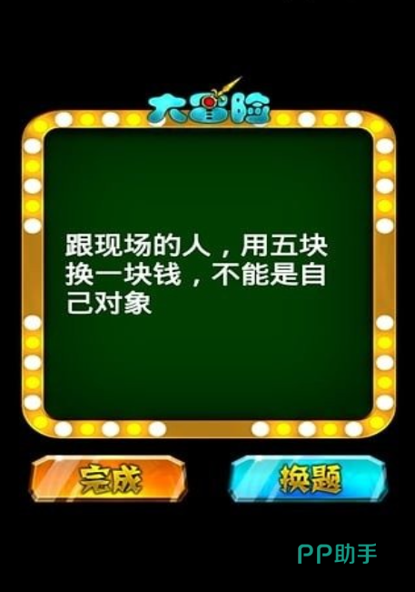 这款游戏为大家设计的问题毫无节操逻辑,定会让你尴尬无措,而其设计的大冒险任务也是调皮有趣,让你左右为难,这也大大促进了你和朋友之间的感情交流。游戏为了让新手老手玩家都得到能适应的挑战难度,特别分了多种难度等级。游戏的配乐诙谐搞怪,烘托轻松氛围,大家听了不再紧张。