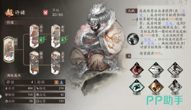 所以相对于泰山压顶这个技能来说,是非常适合跟阻敌这类被动搭配在一起使用的,而他另外的军功技能上面,可以选择临危救主,也就是在他自身两格范围之内受到攻击的时候,同样是带来一个换位的效果,额外在另外一个技能上面带的就是推荐横扫了,横扫这个技能,可以对范围之内友军的效果都带来物攻80%的伤害,并击退一个格子,所以相对来说,许诸在技能搭配上面,如果路线不一样的话,搭配的技能效果也不一样。