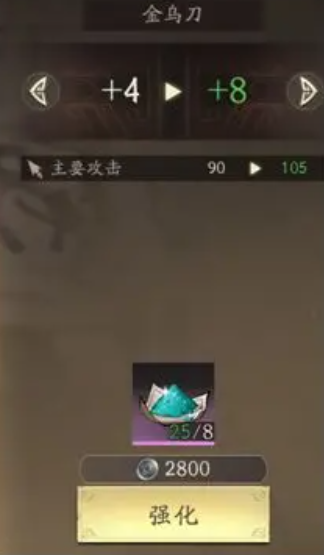 而到后期的话,大家可以跟随武将的等级来慢慢进行强化升级,后期大家有可能会用到60级的装备效果,这里如果想要给装备进行强化的话,就需要在提前的资源里面获取更多的铁砂,铁砂进行强化的时候,普通装备上面强化的上限也是不一样的,品质越高的武器进行强化的时候,他们能够达到的最高等级上限也会更高一些,比如说基础的绿装,他们最多是只能强化到两级的,而如果大家拿到橙装的话,可以给他进行的强化,最高上限是能够达到8级的。