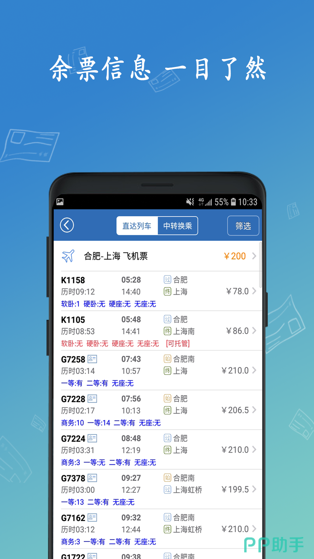 这款应用主打简洁高效的购票体验,专注于提供火车、动车及高铁相关信息查询服务。界面清晰明了,涵盖列车时刻表、余票数量、发车与到达时间等关键数据。用户可在平台上直接进行购票、退票及改签操作,所有交易流程均对接官方通道,不收取额外手续费,适合长期作为主力购票工具使用。