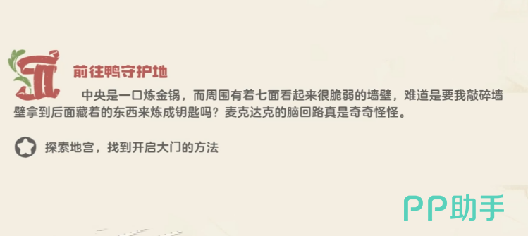 随后沿原路返回,前往之前未打通的另一侧石墙,击碎后进入房间,里面有一只鸭吉吉。注意不要尝试捕捉,而是直接战斗并将其击败,胜利后即可获得第二块矿石晶块。拿到晶块后继续向前推进,打破对面的墙壁,进入新区域后会看到一块巨大的晶石。召唤精灵对其发动攻击,直至将其完全击碎,便可取得第三块矿石晶块。最后回到最初紫色大锅的位置,将三块矿石晶块合成为钥匙,大门随即开启,迷宫挑战顺利完成。