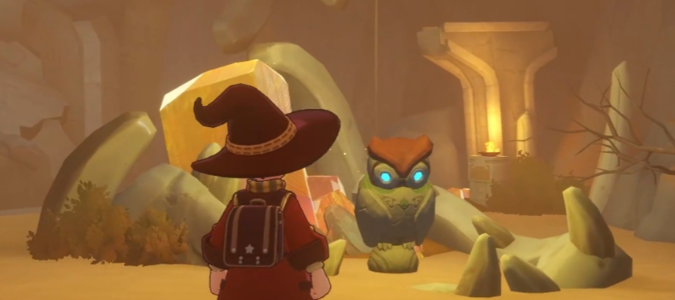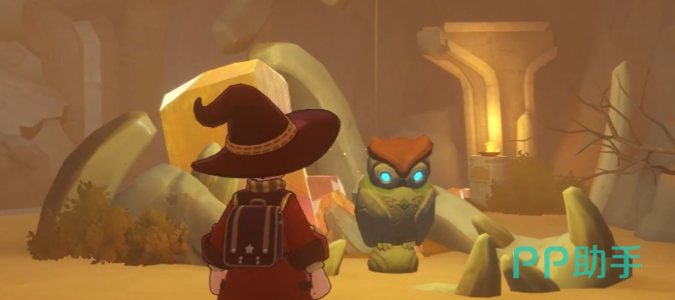 接着转向紫色锅的右侧区域,这里有两道石墙需要处理。先击破第一道墙,进入内部后会遭遇一只猫头鹰。切换至星光魔法进行攻击,使其转身,随即会显现出第二只猫头鹰,同样用星光魔法击败它。击败第二只后回头查看,第三只猫头鹰会出现,将其成功击倒后,便可抵达尽头位置,找到一个华丽的宝箱,开启后即可获得第一块矿石晶块。