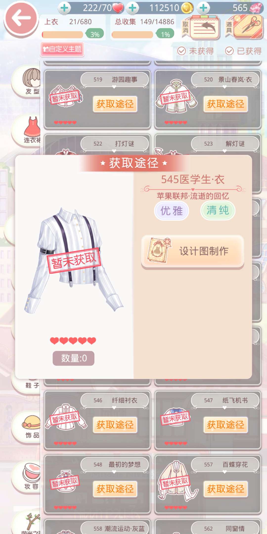 上衣推荐五星的医学生·衣,这是一件优雅&清纯风格的上衣,是由设计图制作获得的。制作需要花费1件猩红马甲,2件丝绸河流和4件首席特助·衣。
