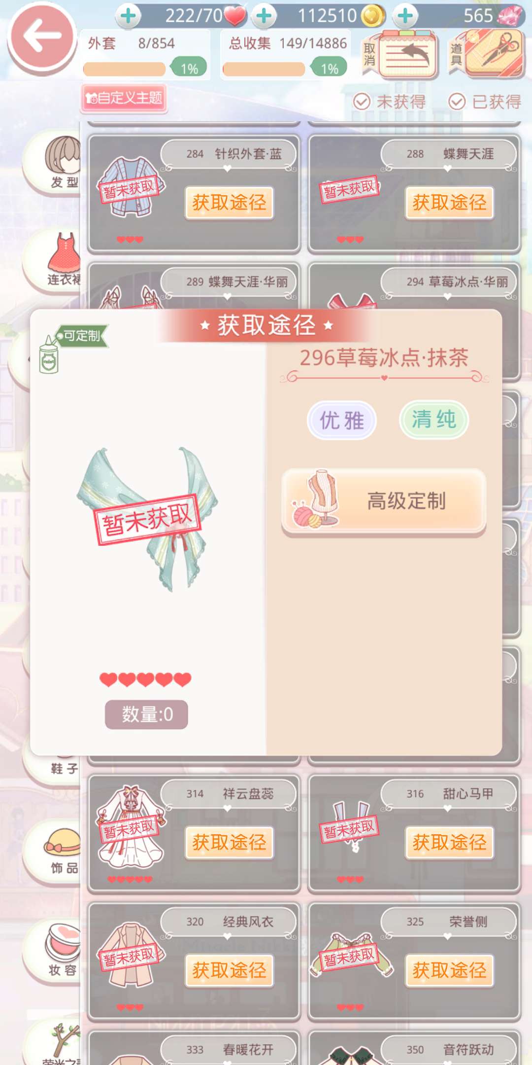 接下来是外套的推荐。草莓冰点·抹茶是一件五星的优雅&清纯风格外套,这件外套需要通过原色款的草莓冰点·珍稀染色获得,而原色款需要通过草莓冰点·华丽获得,一开始需要玩家通过卷一的11-2解锁获取方式。