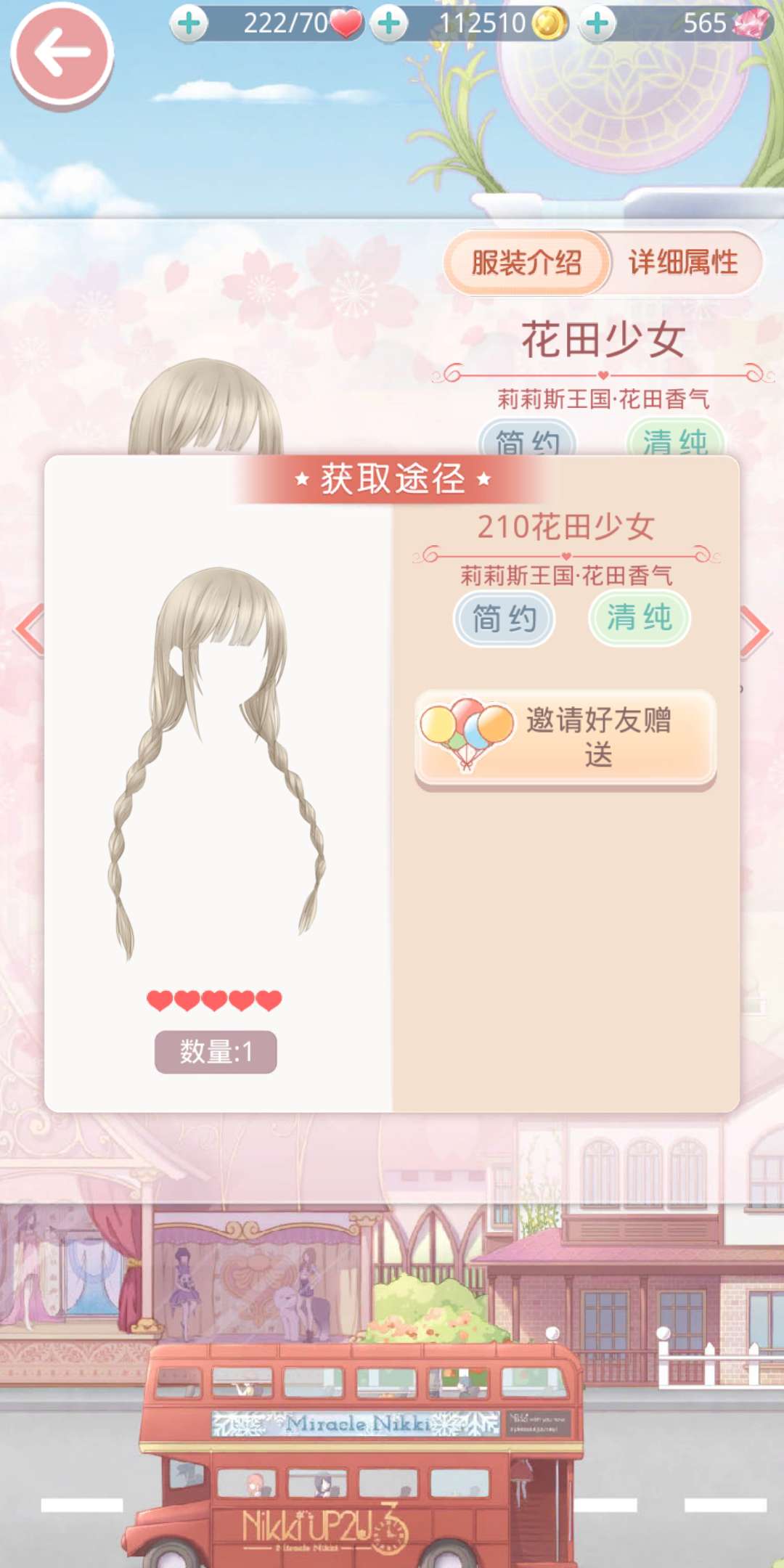 从发型开始。花田少女是简约&清纯风格的发型,说是需要邀请好友赠送,但由于这是第一档的奖励,所以玩家只要打开活动面板就能直接获得这个发型。这是个非常好用的五星发型。