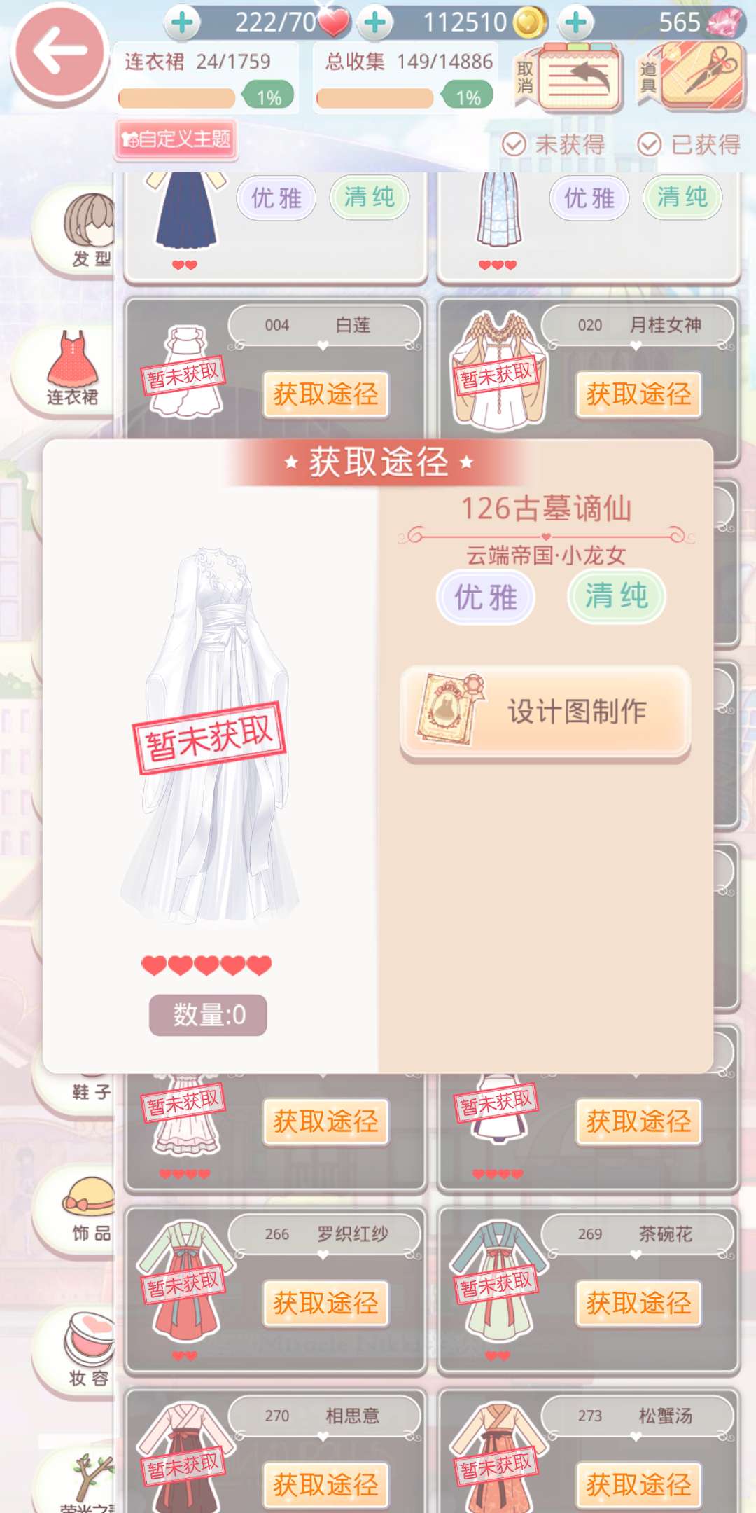 连衣裙是比较推荐玩家们去制作的,这款古墓谪仙具有优雅&清纯的风格,在获取了对应的设计图之后,需要花费材料:8件真丝睡衣·白、4件暖之舞、3件星河曲·白鹤和3件杏花阁制作而成。制作所需的材料比较多,但是这件连衣裙可以获得很好的分数加成。
