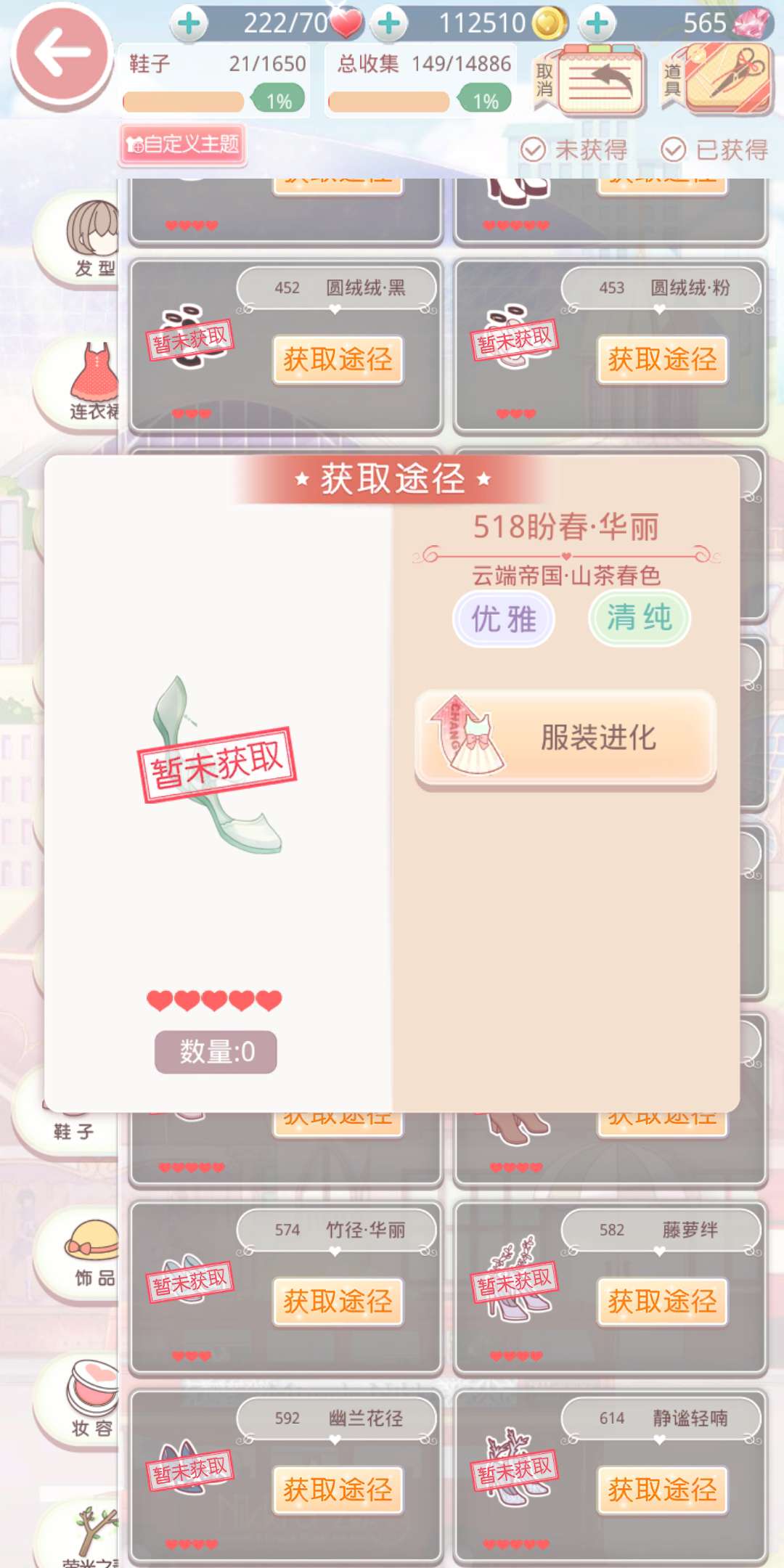 盼春·华丽是一双五星的优雅&清纯鞋子,需要通过四星的盼春进化获得。这双鞋子可以说是在符合主题的鞋中最容易获得的一款了,建议玩家选择制作这双鞋子。