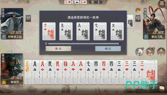 鲁肃的“豪富”技能在无牌可压的情况下生效,玩家可以从牌堆亮出3张牌(五人局则为5张),并从自己开始按顺序每人轮流选取一张加入手牌。此技能有助于补充关键牌型,提升持续作战能力。