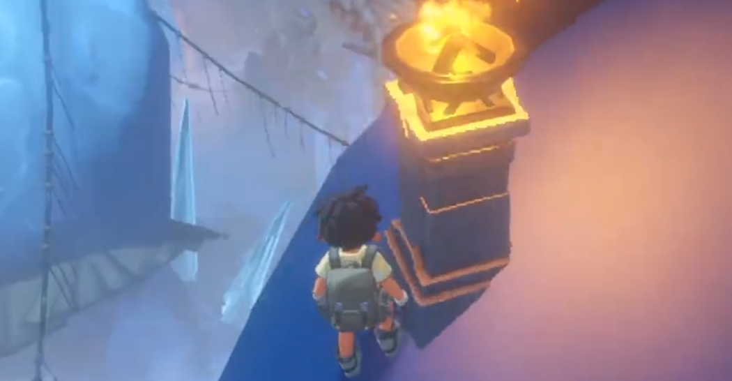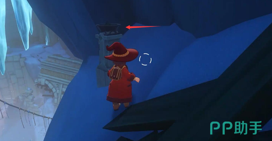 首先,玩家可通过主地图直接传送至暖火雪境传送点。抵达后,在传送门附近可发现一处地宫入口。要开启地宫,需依次点燃四周的四支火炬。第一支火炬位于平台高处,使用火系精灵即可成功点燃。在前往途中,左侧雪堆后方藏有一个游戏代币,右侧冰柱旁也设有另一个,建议顺路拾取以节省时间。