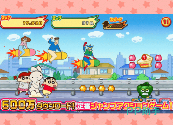 属于根据大家喜欢的动画片改编而来的休闲趣味性手游,所以依旧能让大家看到充满着动画片的场景,以及人物的特点,将通过与蜡笔小新与身边的朋友,甚至是父母等。开启一段趣味性的冒险旅途。还可在整个冒险的时候骑着火箭,以及跳跃灵活的走位等丰富的操作方法,在冒险的过程当中更顺利,也能解锁更多的人物形象。