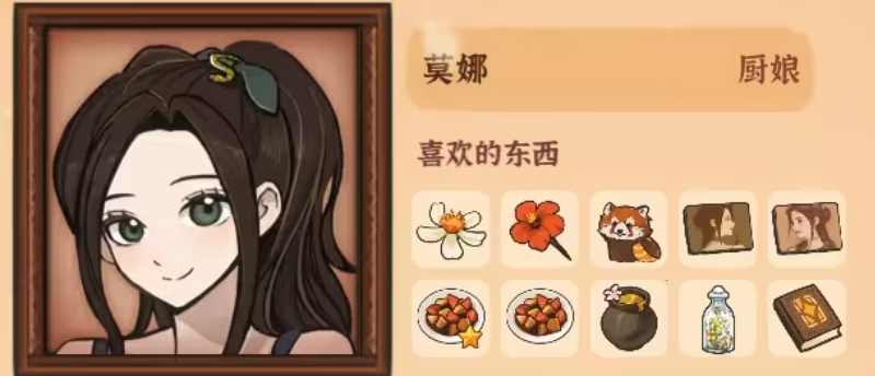 接下来会给大家介绍的是一些通用PC,这些通用PC其实其中给到的奖励反而更多一些,因为他们喜欢的物品也更多一些,比如莫娜就是推荐给大家第一个通用NPC,她在游戏当中是一个厨娘的身份,给她送花的话其实非常的好获取好感度,因为她喜欢各种野花,所以在这里的话给他送花是具有性价比的,那么其次,他喜欢的动物是小熊猫,大家在巡猎的时候,如果遇到小熊猫的话,也是可以送给他的,那么在喜欢的物品上面,她会喜欢自己的一个莫娜肖像,这个莫娜肖像,大家可以在野马湖画板上面获取,然后后期低头脑跟高头脑都是可以获取这个莫娜肖像的,在烹饪里面,如果做出来了营养胡萝卜肉这个菜肴的话,也是可以送给他获得好感度加成。