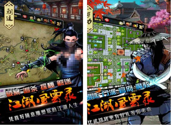 拥有着浓郁的水墨风格,玩家可以成为江湖中的各种角色,也是能原玩家的武侠梦想,其中也支持在里面不断的历练成长,有超多唯美的仙境美景以及不同的环境,可以进行探索。通过对小说当中大家比较喜欢的故事剧情进行了呈现,根据文字的提示以及自己所做的选择以后,做很多自己喜欢的各种事情,也有着不一样的故事剧情。