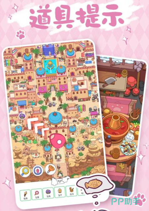 一款画风清新可爱的寻物解谜游戏,整体设定在一个充满童趣的猫咪世界中。每一关都设有独特的场景与任务目标,玩家需要根据提示,在规定时限内找到隐藏在画面中的特定物品或角色。随着关卡推进,难度逐渐上升,细节隐藏得也更加隐蔽。当陷入困境时,系统会提供辅助道具帮助突破难关。无论是视觉风格还是互动设计,这款游戏都充满了轻松愉悦的氛围,非常适合喜欢探索与发现的玩家体验。