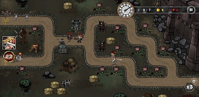 《暗黑塔防》采用横向卷轴式地图结构,战役分为多个阶段逐步推进。玩家需守护圣门入口,抵御无魂者的持续侵袭。敌方阵营包含三位拥有压倒性能力的恶魔首领。防御体系依靠多种属性各异的炮台搭建,每种炮台攻击时会实时显示伤害数值,便于精准评估输出效率。