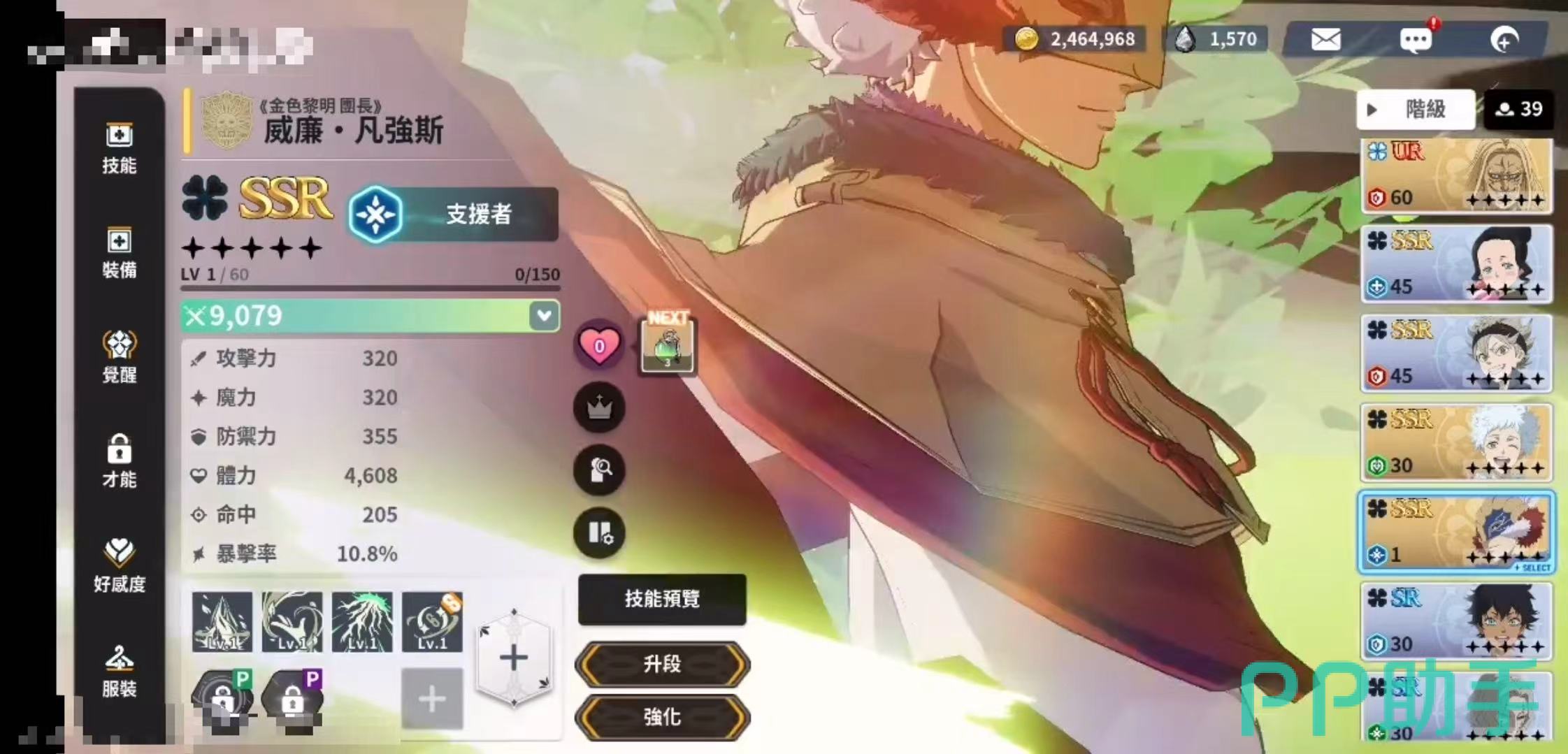目前实装的支援者共有九位,但从综合表现来看,蓝色品质的威廉、红色品质的莎莉以及绿色品质的夏洛特尤为突出。威廉是一名兼具拉条与减伤能力的优质辅助,其技能可提升全体队友的行动条进度,并对攻击力最高的单位附加额外增益。此外,他还能与初始角色尤诺激活连携技,大幅增强队伍节奏控制能力,是前期过渡阶段的理想人选。