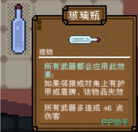 遗物类道具同样是战斗中的重要组成部分。例如玻璃瓶这类遗物,能够在满足条件时为所有武器提供额外6点伤害加成。但其生效前提是上方或对角位置不能存在护甲或护盾类物品,否则技能将被抑制。此外,炸弹等其他遗物也具备回血、减伤等多种辅助功能,适用于多种战斗场景,灵活运用可大幅提升生存能力与输出效率。