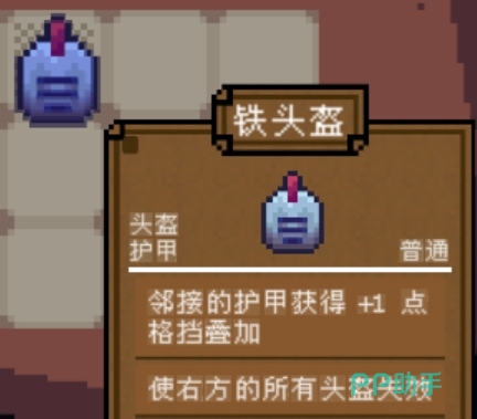 头盔与护甲类装备主要提供防御向加成。基础款式的帽子不仅能恢复法力值,还附带格挡与闪避属性。而传说级别的帽子效果更为突出,可为非刀类武器提供50%的伤害加成,并额外增加两点格挡值。带刺头盔则是一种攻击型防御装备,针对右侧相邻位置的头盔进行反击,成功触发后可叠加4点输出。但需注意,此类装备仅在角色位于背包最上一行时才可生效,因此摆放位置至关重要。
