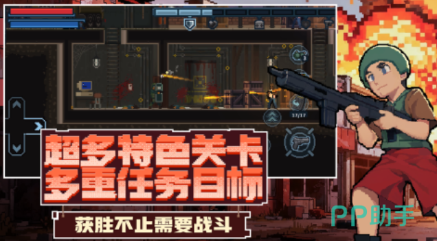 这是一款横版视角下的像素风格射击闯关游戏,拥有丰富的关卡设计与任务系统。玩家将化身为特警队员,在每一关开始前大力踹门突入现场,展现硬汉气势。你需要清除房间内的敌对分子并成功解救被困人质。通关方式灵活多变,提升了整体策略性与操作自由度。武器种类丰富,角色造型充满像素艺术感。支持组建专属作战小队,展开紧张刺激的战术推进战斗。