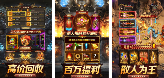 主打的就是零氪,照样也可以充当大佬,游戏的经典配置那就是战法道三职业,加入自由交易机制以及爆率打金更能吸引大家。福利给的真的比较实在,在刚刚进服时,无论是否氪金全部都可以拿到极品的装备,福利还是比较丰富的,因此在开荒的时候就没有什么太大的压力,而且还会送切割伤害,并不需要去卡等级,收益相对比较稳定。