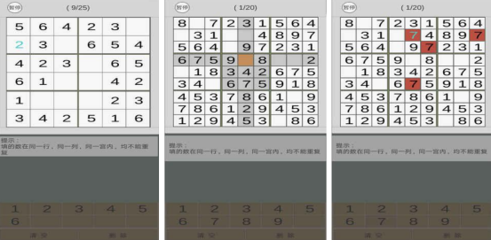 源自于曾经的瑞士文化,已有多年的发展历程,有3×3的正方形方块,而每个风格中又会有一个九宫格展现,每个九宫格中都会看到已展现的数字或者是空白的方块,而在屏幕的最下方也会看到1~9的数字,在这些小小的方块中,只要正确填上1~9的数字,就能够完成挑战,但是最主要的一个细节那就是确保每行每列都不能重复,一旦出现数字重复的情况下,就会影响游戏的结局。