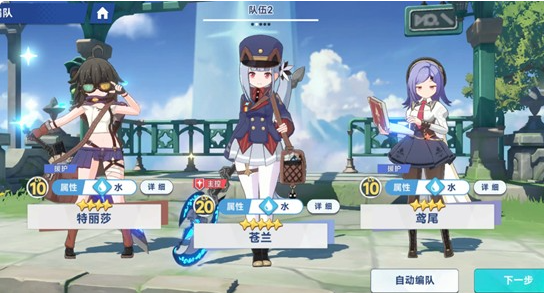 要是没有收到这些高星的角色,也可以选用苍兰 + 鸢尾 + 任意水属性治疗,这一个组合实用性就比较出色,当然核心的玩法是不变的,而且还多了一个续航保障。这套阵容中,因为有鸢尾还有苍兰的保障,将特丽莎更换成水属性治疗,就能提升续航的能力。苍兰本身的生存能力并不是很强,治疗角色就可以帮助整个队伍抵抗得住长时间的消耗,减少减员的情况,在操作时从容应对。而且水属性治疗还能有效强化水属性协同的效果,虽然比不上特丽莎的直接增益,但也很容易成型。