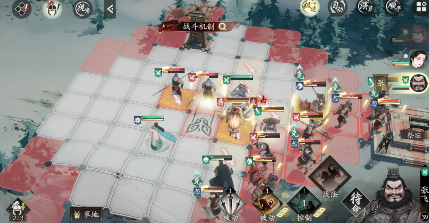 袁绍的技能总共有三个,一技能会直接对直线范围的所有敌人进行一次打击,该技能的机动性极强,如若玩家的角色布置在袁绍的突进位点,很有可能被群体削减血量,导致在下一个回合内失去优势。