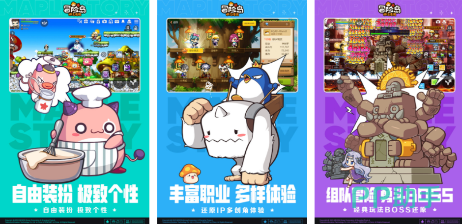通过冒险岛联盟的意志,每个玩家都可以进入到经典的IP世界,在这里可以在正版授权的IP场景中,继续和这些经典的角色一起探索老地方,里面会呈现出一个横屏场景,玩家可以带领角色,在场景里不断开启探险,除了借助大量的萌宠在游戏里参与对战之外,角色也支持外观的修改,这样就能用一个自定义的形象组队挑战boss,每次击败boss之后还能获得大量游戏装备,让玩家在后续冒险过程中,能拥有更强的战斗能力。