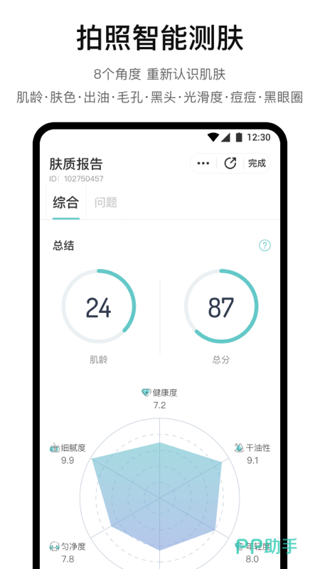 专注于皮肤健康的自我管理,它运用先进的图像处理和专业算法,能对用户上传的皮肤照片进行深度分析,从细腻程度、纹理特征以及均匀度等多个维度出发,给到具有针对性且个性化的评分和建议,从而帮助用户更好地了解和管理自己的皮肤健康状况。