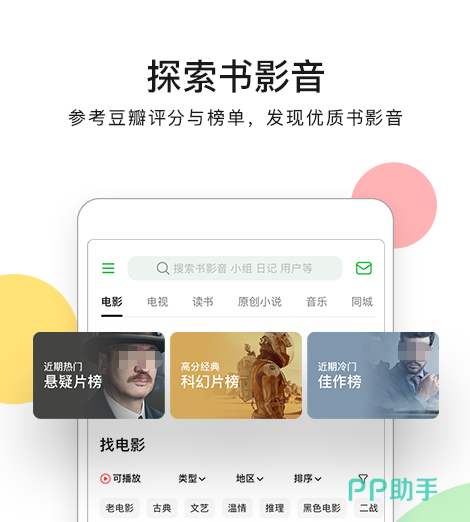 综合性文化生活社区,以书影音评分、兴趣小组和深度讨论为核心,大家能主动去记录个人观影、阅读、音乐轨迹,还可参与主题小组讨论,最新UI升级的界面,智能推荐引擎推送内容,为大家聚合了读书会、电影赏析等事件,轻松结识各类好友。