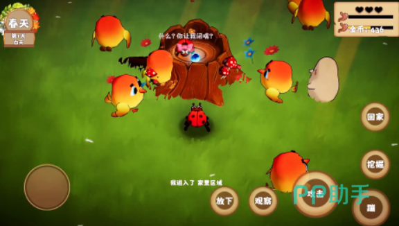 我是虫虫把玩家带入微观世界,以小瓢虫12天的生命循环作为核心冒险脉络,玩家可以穿梭其中挖掘土块、采集花朵,这些资源不仅能用来搭建温馨的家园,还能根据自己的喜好进行装饰,离家越远能找到的稀有资源就越多,不过无需担心迷路,一键返程功能能让玩家轻松回到住所。