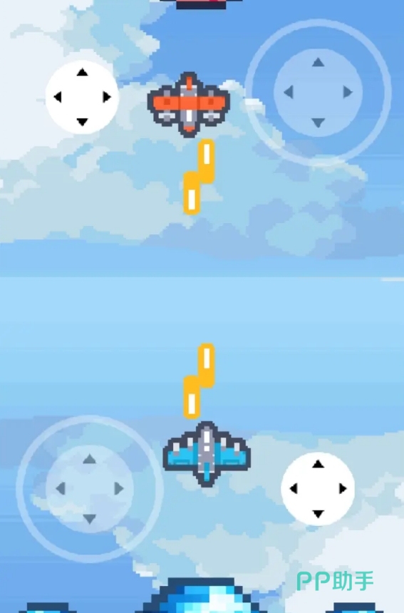 《天空双人对决》可让两名玩家用同一设备进行天空射击对决,游玩时将各自操控一台战机,只要能赶在对手之前将他的战机击落便能获胜,并且同屏时双人的操控都不会互相干扰,使得此作的游玩体验极为出色。当然,游戏并非只有简单的对射,各位还可在竞技时操控战机使用不同的武器,游戏更是会在对战时在地图中间随机刷出会阻挡武器弹道的平台,为人们的对决带来变数和提高射击难度。