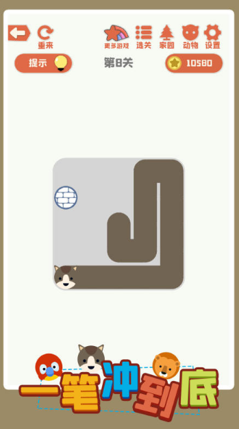 场景把可爱的小动物作为主角,玩家需要引导小动物在各种隧道里急速穿行,填满所有空格子。游戏中所有隧道都是随机出现,不仅包含各种密度的障碍物,更需要玩家及时的调整布局,避免线路重复。关卡里虽然场景简单,却设置了雨雪,沙尘等天气作为障碍,玩家们出现线路错误,可以使用橡皮擦及时的修正。