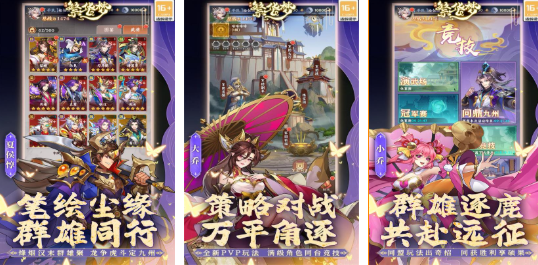 打开游戏之后,会有五大阵营,有数百位的武将,大家就可以自由的组合,还可以获得离线挂机收益。挂机收益可以实时积累,睡觉也可以去升级囤资源,就能真正的实现最后成长。这些武将的形象全部都会还原历史同样还会加上一些艺术加工,让吕布以及关羽这些角色都有鲜明的性格,整个游戏的代入感较强。