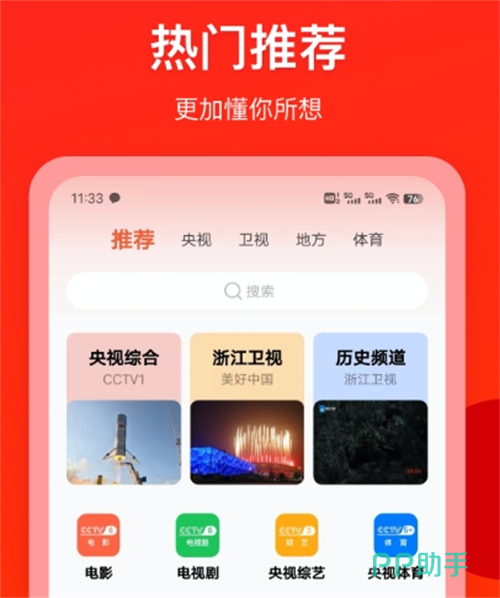 聚合央视、卫视、地方台及体育赛事的直播应用,主打全频道覆盖与高清流畅体验,其界面简洁,用户可一键切换各频道,满足不同年龄段用户的观看需求,整体使用起来的便利性方面非常高。