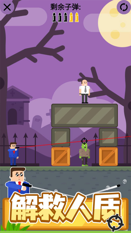 《子弹先生》是一款机制新颖的动作射击类poki游戏,其最大亮点在于独创的弹道反弹系统。玩家需巧妙借助场景中的墙壁、障碍物等结构,规划子弹飞行路径,实现精准打击。每关仅提供一发子弹,目标是在不误伤人质的前提下消灭敌人,对空间判断与逻辑推理能力提出极高要求,挑战性十足。
